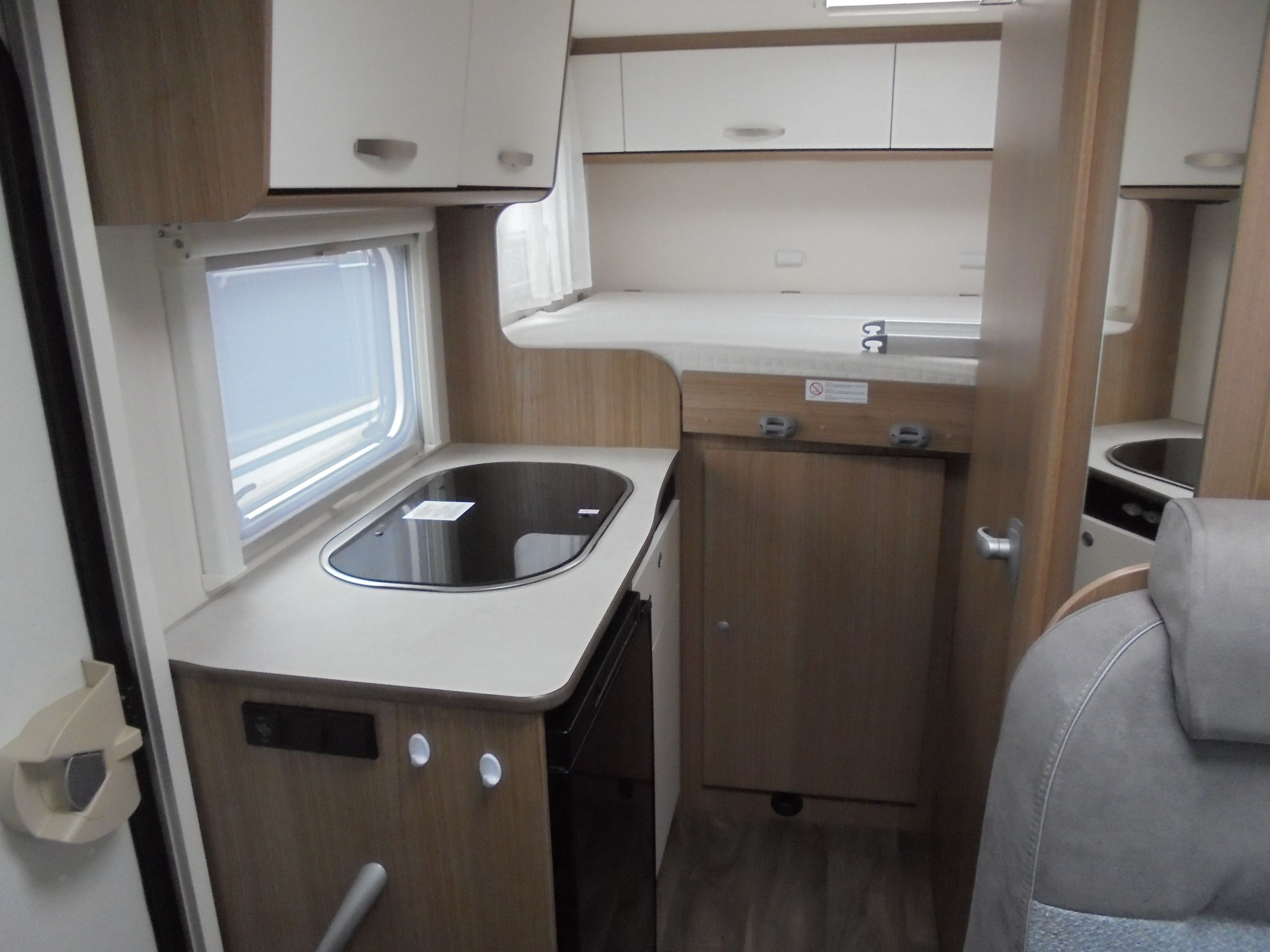 Camping-car pour 4 personnes roulages et 3 couchages Lit sur garage, dînette transformable en couchage, WC douche, pack TV + Antenne automatique, store, main de sécurité, porte vélo, panneau solaire Porteur CITROEN, de 140 CV, boîte manuelle, année 2023 et 5600 Km